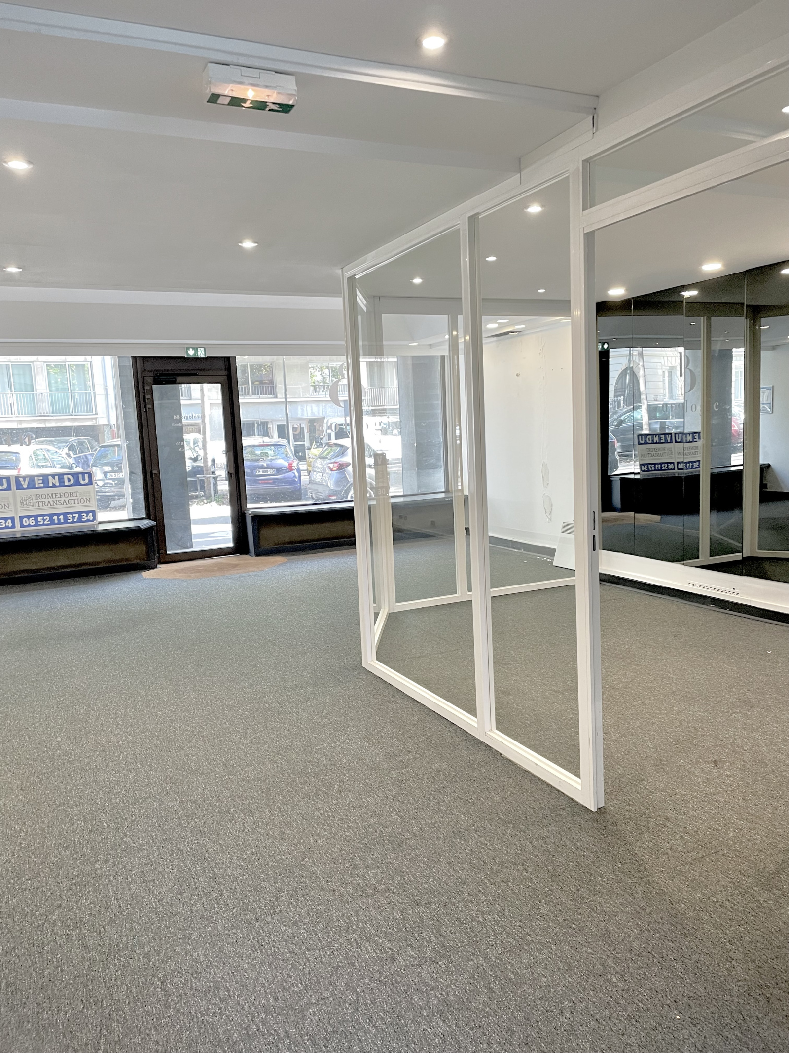 un vaste espace accueil cloisonnable ainsi que de 3 bureaux dont dont avec baie vitrée sur le jardin de la copropriété, un espace sanitaires.