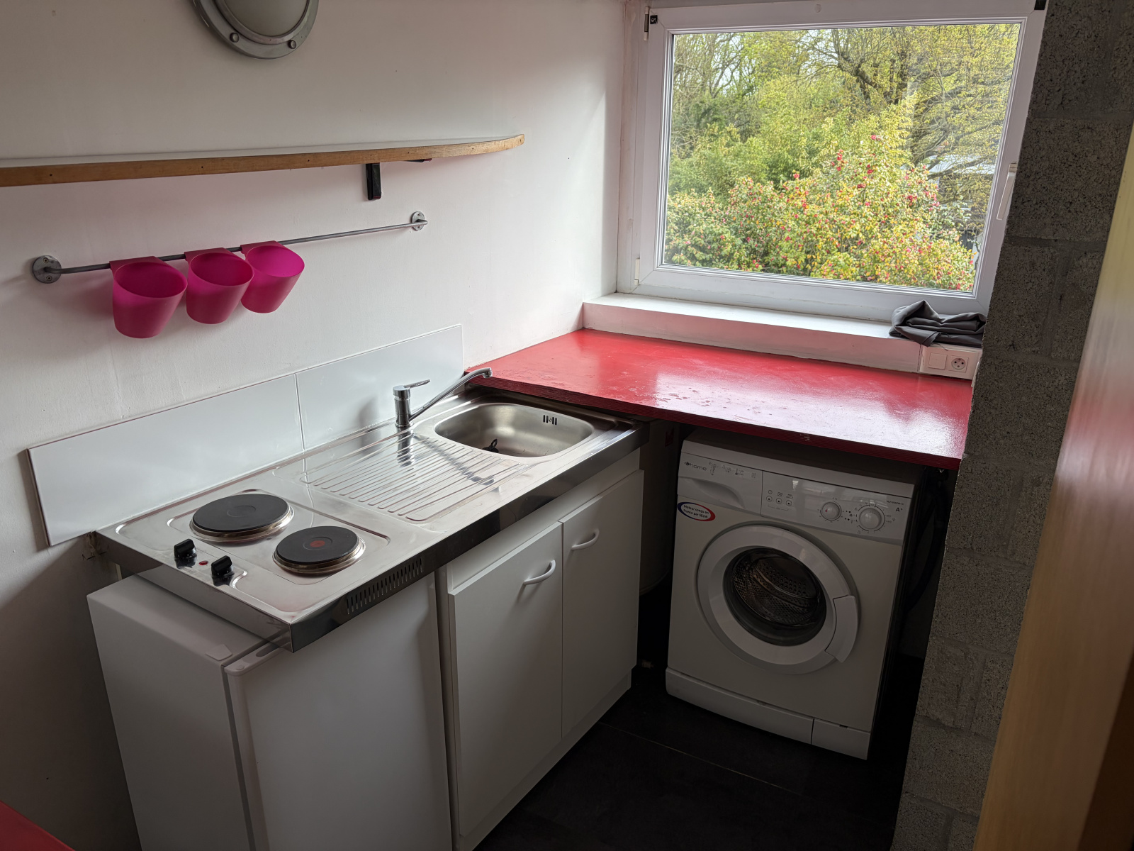Nantes (44300)Dans un petit immeuble situé dans une rue privée et sécurisée, au premier étage un studio composé d’une pièce sur parquet, une mezzanine, salle d’eau avec WC et kitchenette avec plaques électriques et réfrigérateur.