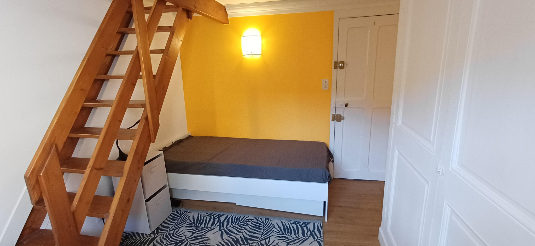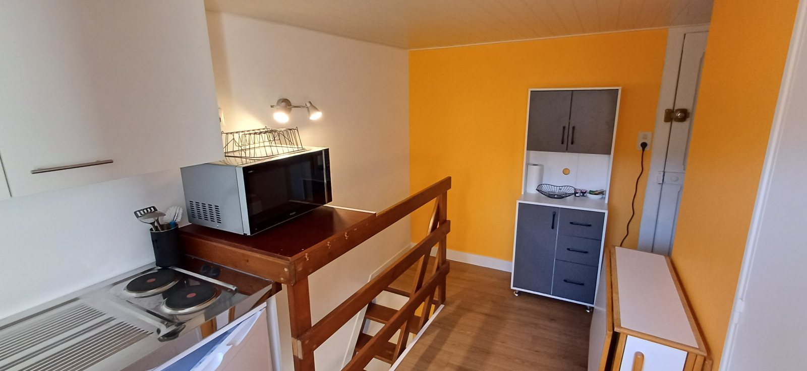 Nantes (44000)Studio meublé de 18m² situé rue Tournefort, à deux pas de la cathedrale, du jardin des plantes et du lycée Clémenceau. Ce studio au calme et très lumineux se compose au 1er niveau d'une chambre avec placard et lavabo, à l'étage, une douche avec WC, coin cuisine, machine à laver.